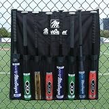 (More customer reviews)Keeps your dugout uncluttered. Stores 8 bats nicely. Has clips to hang from the fence. When leaving, a flap in the back folds over the handles to keep them from banging into each other. The caddy rolls up and has snaps to keep it rolled up and a carrying handle.